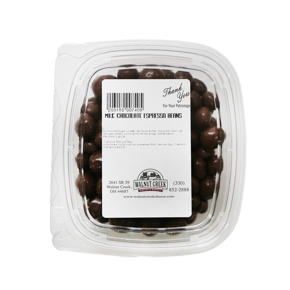 Ingredients: Milk Chocolate (Sugar, Cocoa Butter, Chocolate Liquor, Milk, Nonfat Milk, Butterfat, Contains 2% Or Less Of Soy Lecithin [An Emulsifier], Salt, Natural Vanilla Flavor), Coffee Beans, Water, Gum Arabic, Confectioners Glaze, Modified Starch (Tapioca), Vegetable Oil (Coconut Oil, Canola Oil). ***Contains: Milk, Soy.