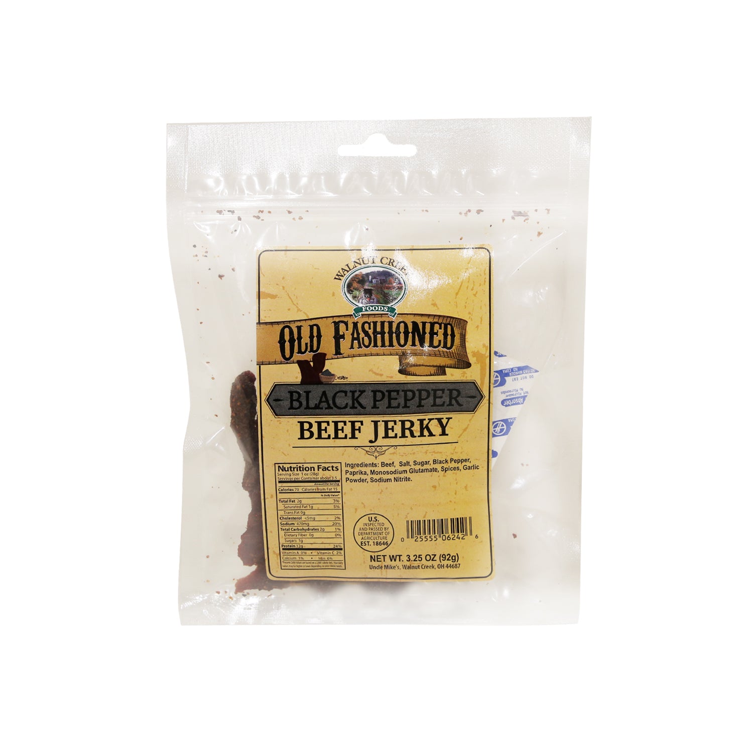 Ingredients: Beef, Salt, Sugar, Black Pepper, Paprika, Monosodium Glutamate, Spices, Garlic Powder, Sodium Nitrite.