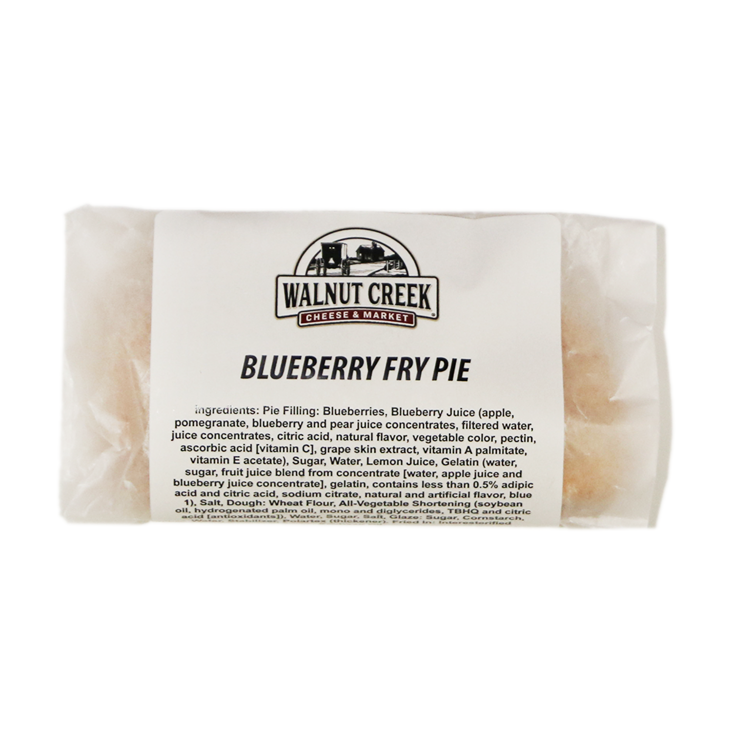 Pie Filling: Blueberries, Blueberry Juice (apple, pomegranate, blueberry and pear juice concentrates, filtered water, juice concentrates, citric acid, natural flavor, vegetable color, pectin, ascorbic acid [vitamin C], grape skin extract, vitamin A palmitate, vitamin E acetate), Sugar, Water, Lemon Juice, Gelatin (water, sugar, fruit juice blend from concentrate [water, apple juice and blueberry juice concentrate], gelatin, contains less than 0.5% adipic acid and citric acid, sodium citrate, natural and artificial flavor, blue 1), Salt, Dough: Wheat Flour, All-Vegetable Shortening (soybean oil, hydrogenated palm oil, mono and diglycerides, TBHQ and citric acid [antioxidants]), Water, Sugar, Salt, Glaze: Sugar, Cornstarch, Water, Stabilizer, Polartex (thickener). Fried In: Interesterified Soybean Oil.