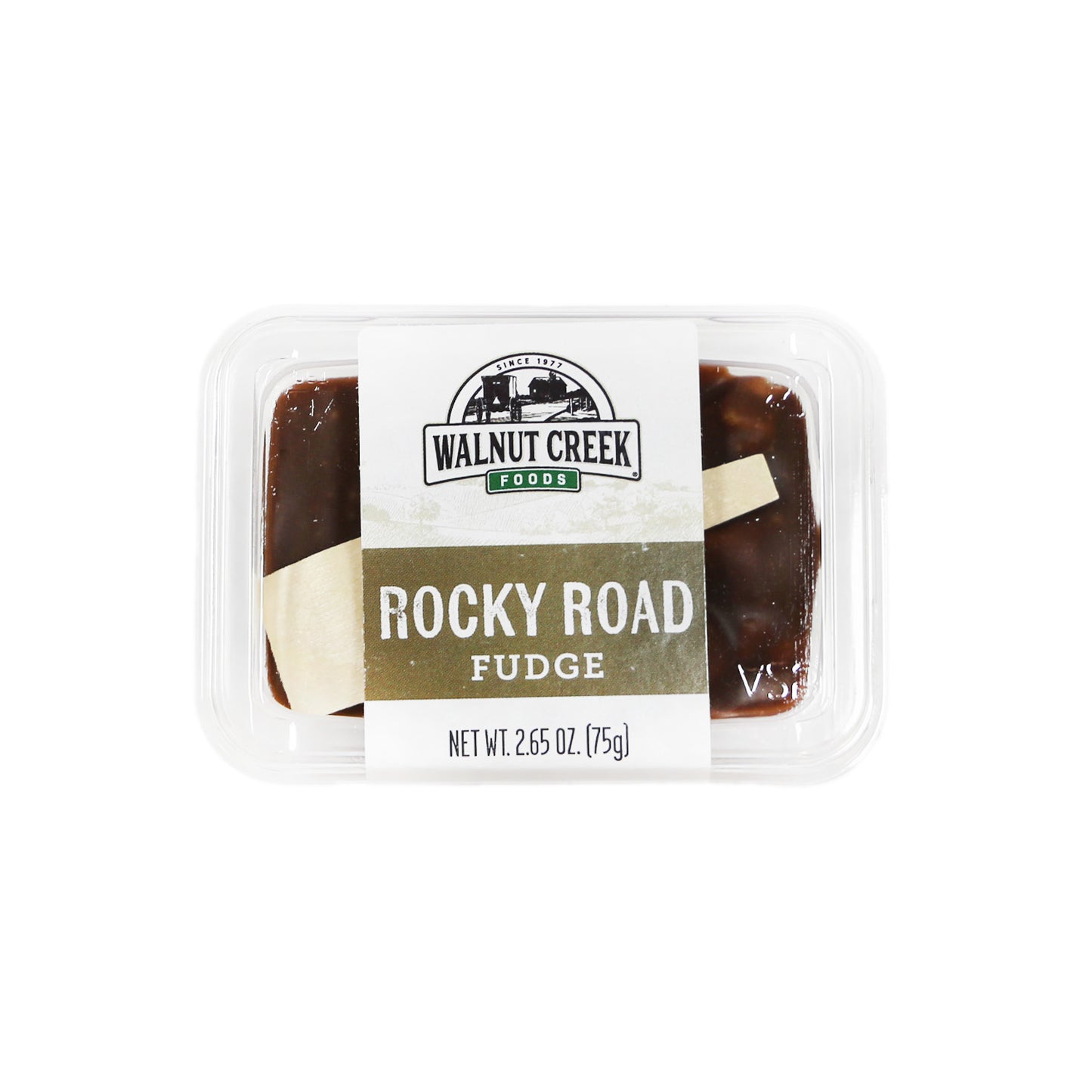 Ingredients: Sugar, Milk Chocolate Confectionary Coating (sugar, palm kernel oil, cocoa powder, whey powder, nonfat milk powder, soy lecithin [an emulsifier], vanilla), Evaporated Milk (milk, dipotassium phosphate, carrageenan, vitamin D3), Light Corn Syrup (corn syrup, high fructose corn syrup, vanilla, salt), Marshmallows (corn syrup, sugar, cornstarch modified, water, gelatin, natural and artificial flavor, tetrasodium pyrophosphate, blue 1), Marshmallow Creme (corn syrup, sugar, water, egg whites, cream of tartar, xanthan gum), Butter (cream, salt), Walnuts, Water, Artificial Flavor, Salt, Potassium Sorbate.