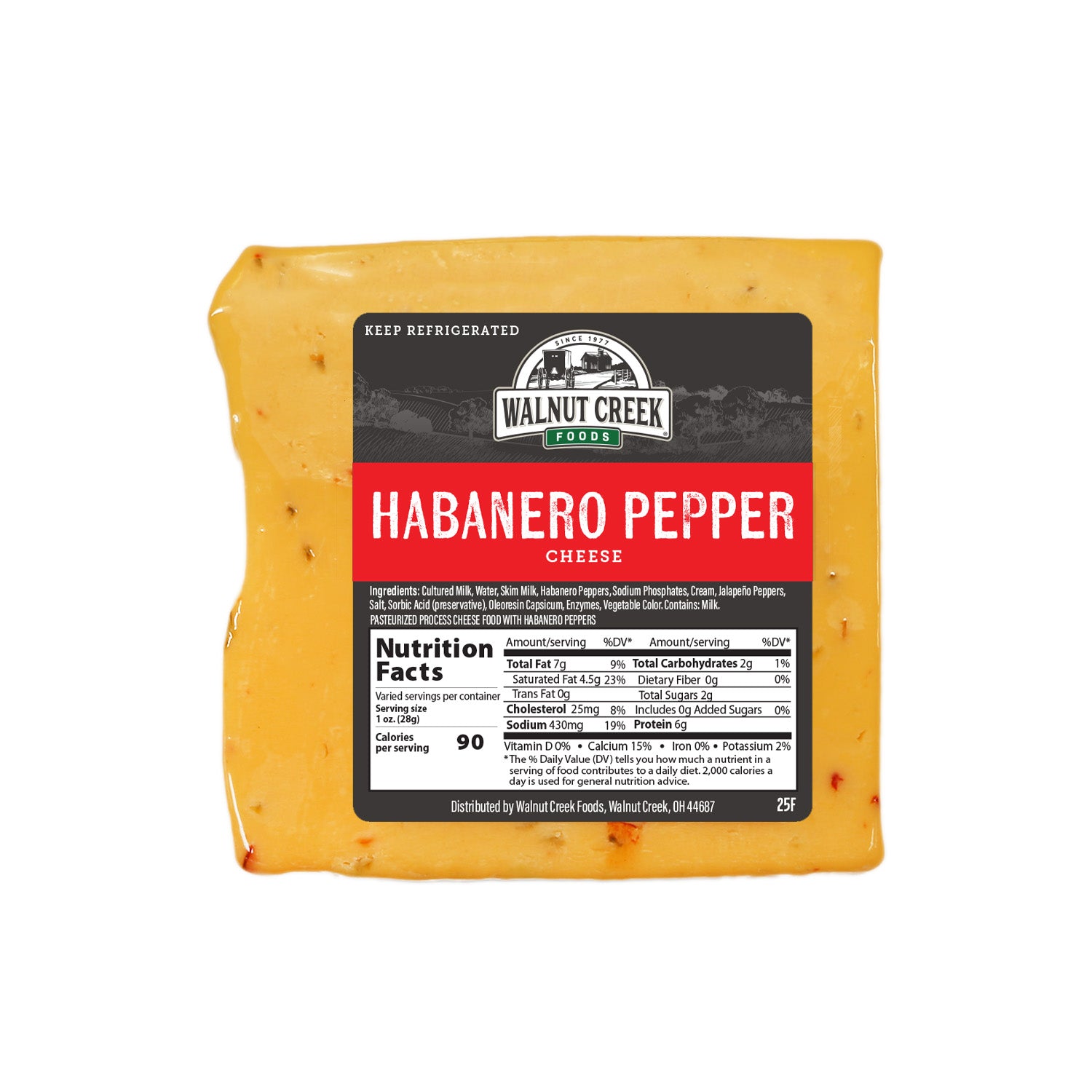 Ingredients: Cultured Milk Water Skim Milk Habanero Peppers Sodium Phosphates Cream Jalapeno Peppers Salt Sorbic Acid (Preservative) Oleoresin Capsicum Enzymes Vegetable Color. *Contains: Milk.