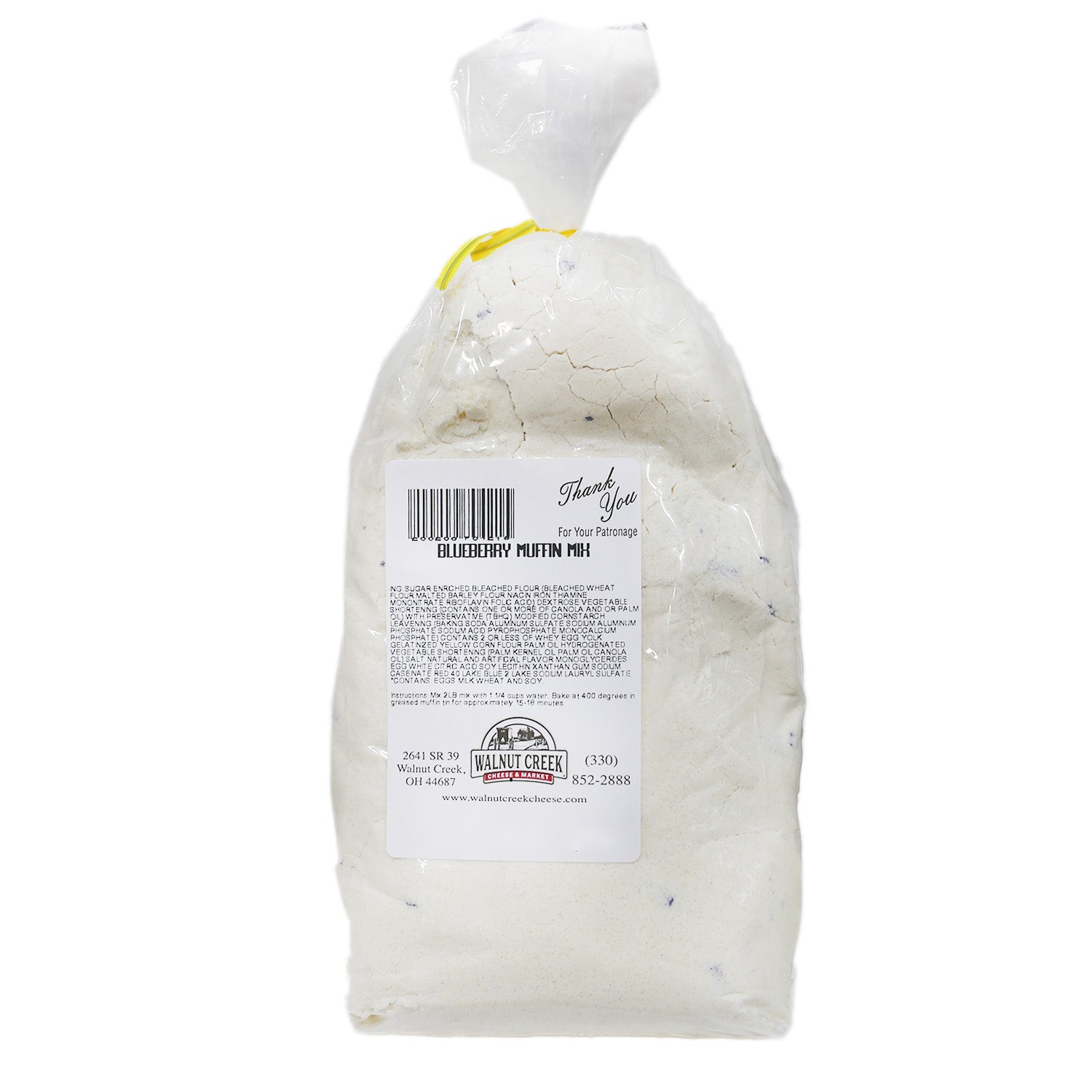 Directions: Mix 2 lb of mix with 1¼ cup water. Mix on low speed for 30 seconds. Bake at 400˚F in greased muffin tins for approximately 15-18 minutes. Makes approximately 12-14 muffins.