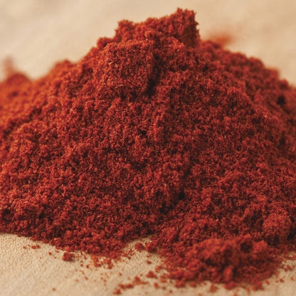 Paprika is the dried, red, ripe fruit of Capsicum annum. Paprika is generally grown in Hungary, Spain and the United States. Ground paprika has a mild flavor and is used primarily for it's coloring properties.