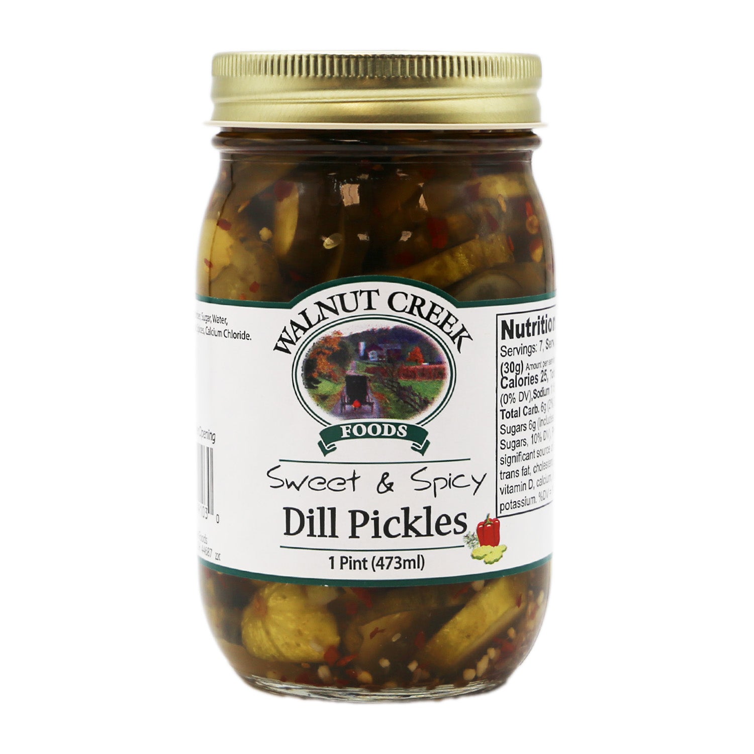 Ingredients: Cucumbers, Water, Sugar, Vinegar, Spices, Salt, Garlic, Calcium Chloride, Natural Flavor.