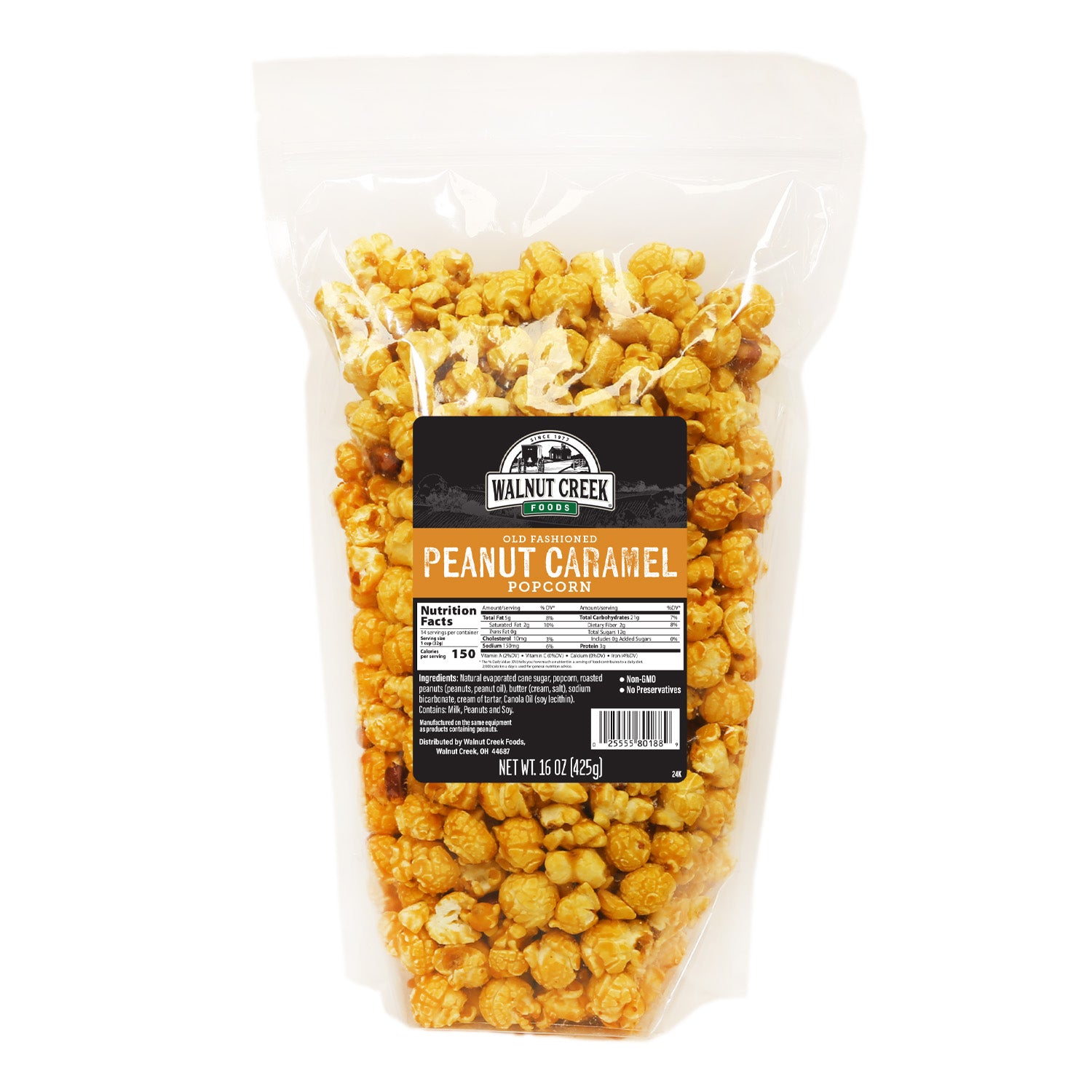 Natural evaporated cane sugar, popcorn, roasted peanuts (peanuts, peanut oil), butter (cream, salt), sodium bicarbonate, cream of tartar.