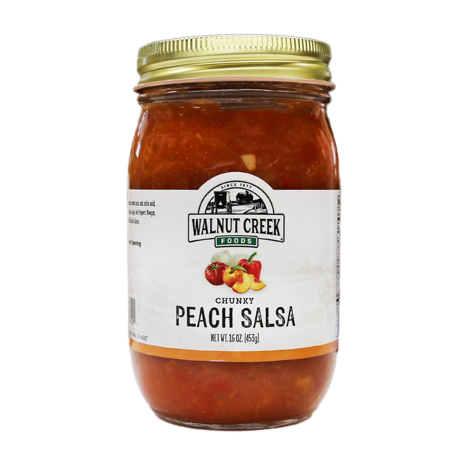 Ingredients: Diced Tomatoes (tomatoes, tomato juice, salt, citric acid, calcium chloride), Peaches, Water, Onions, Sugar, Red Peppers, Vinegar, Natural Flavor, Salt, Food Starch-Modified, Garlic, Spices.
