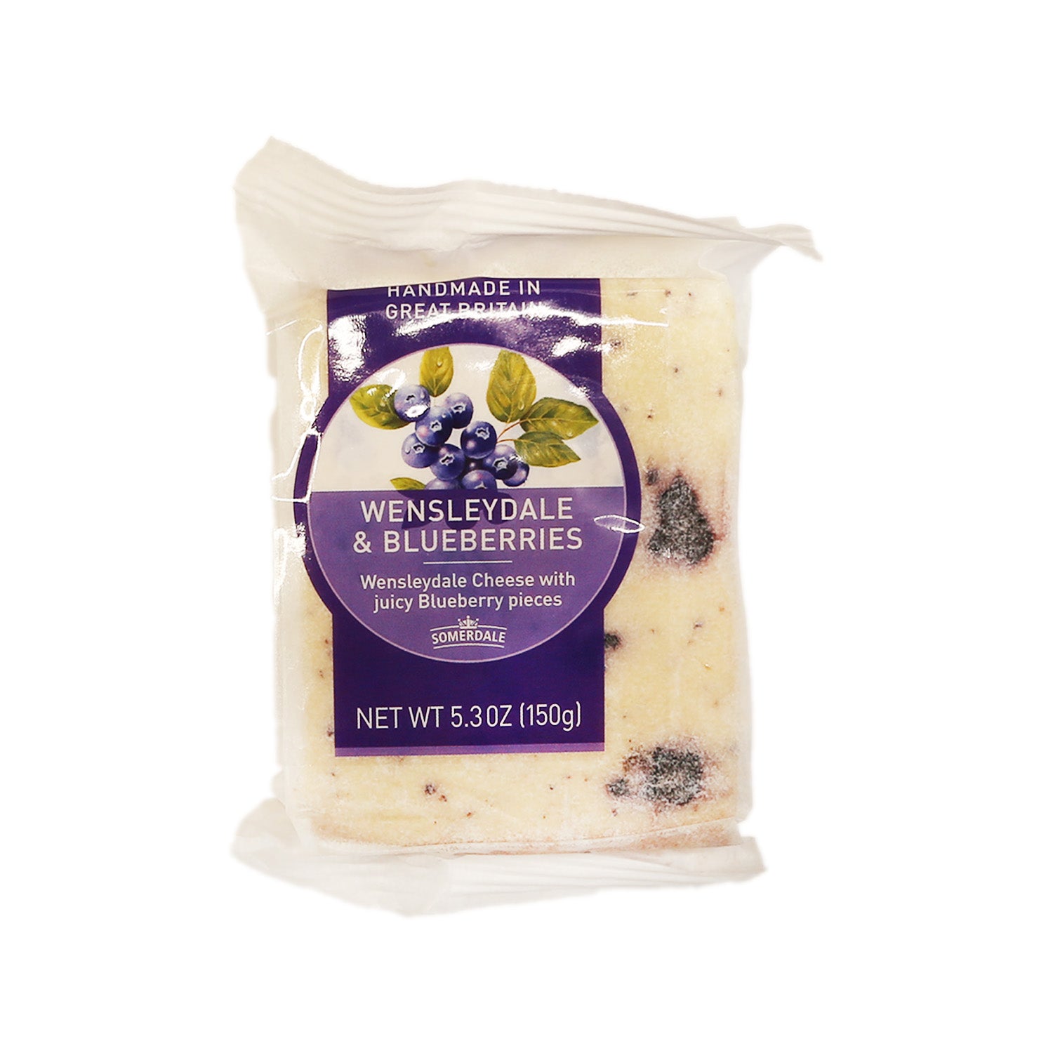 Ingredients: Wensleydale Cheese (Pasteurized Cow's Milk, Salt, Vegetarian Rennet, Starter Culture), Dried Sweetened Blueberries (Blueberries, Sugar, Sunflower Oil), Sugar.